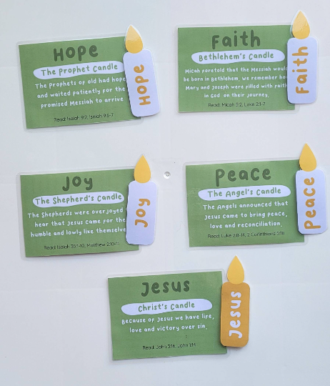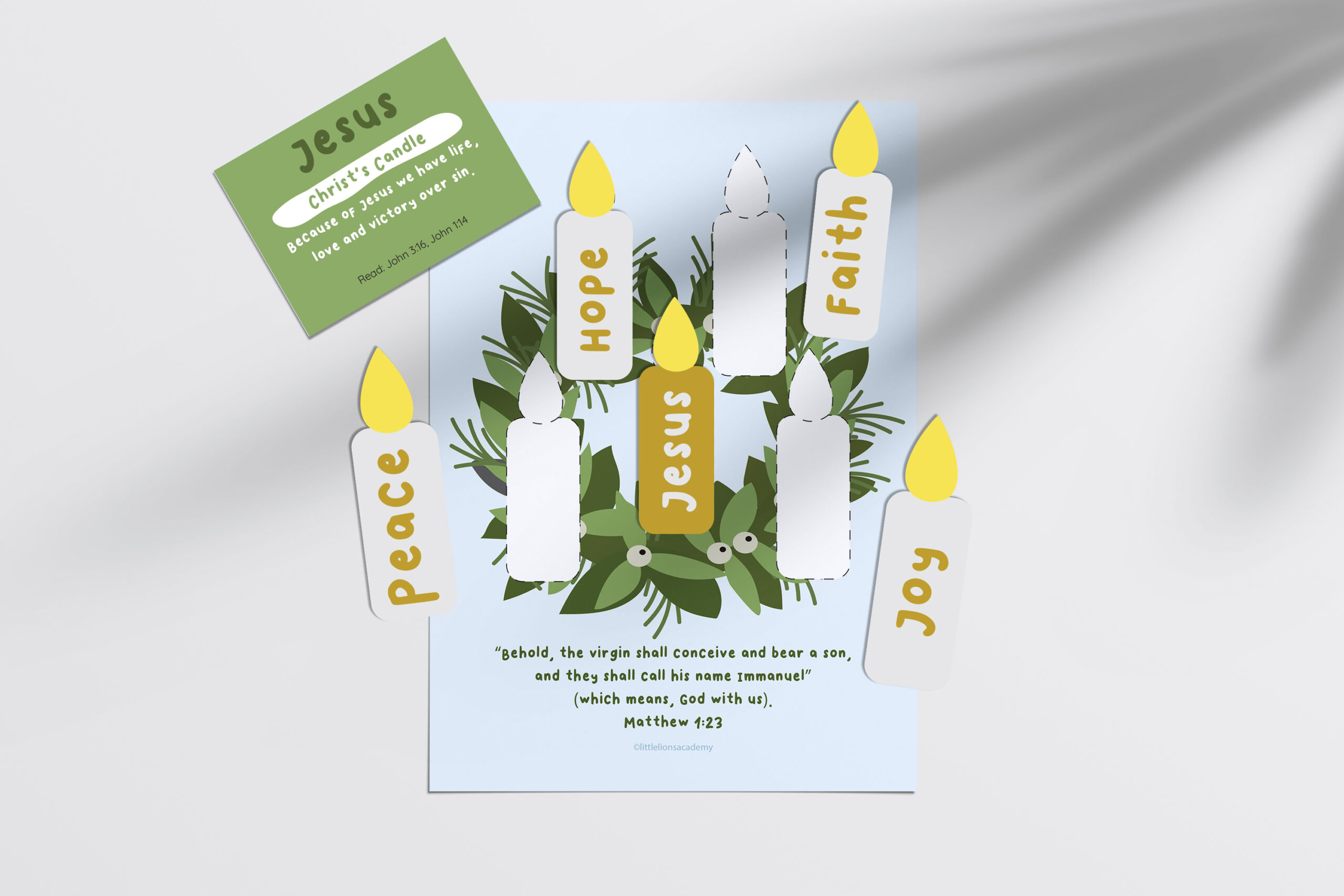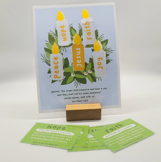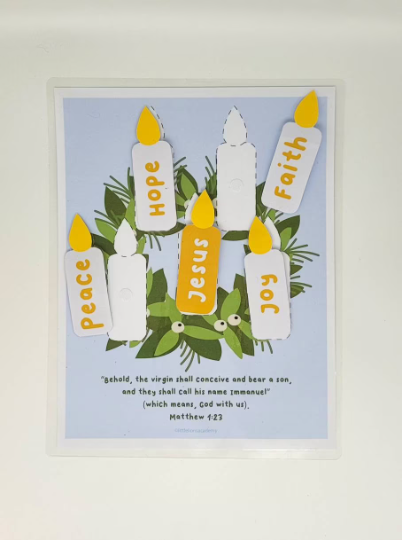 Countdown to Christmas all while reflecting on its true meaning with our Printable Advent Wreath activity. Each Sunday leading up to Christmas “light a candle” and place it on the wreath with your little one. Use the flashcards to reflect on the meaning behind each candle.
